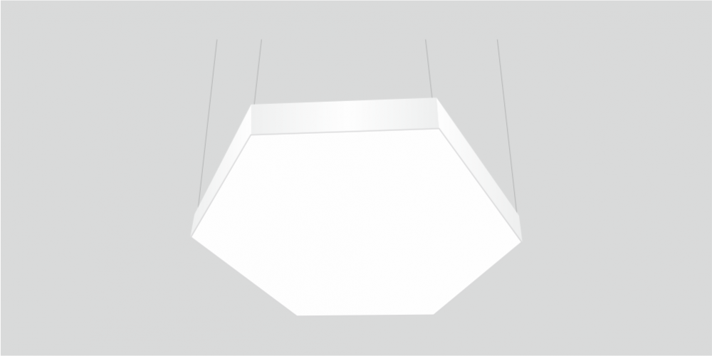 Светодиодный светильник в виде гексагона LiNE-PRO мощностью 330 Вт 1900 мм изготовлен из алюминиевого основания, с установленными на него светодиодными модулями. Возможна различная цветовая температура - 3000К, 4000К, 5000К, 6000К. Боковины могут быть изготовлены из плотного ПВХ различного цвета, на выбор или светотехнического акрила и выполнять функцию рассеивателя. Блок питания внутри корпуса светильника. Монтаж на тросовых подвесах или непосредственно к потолку или стене.