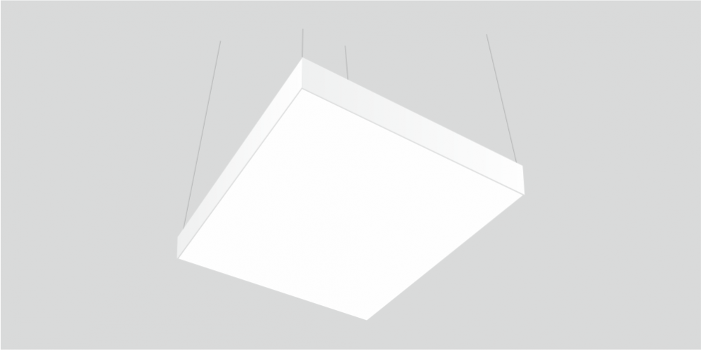 Светодиодный светильник в виде квадрата LiNE-PRO мощностью 145Вт и 1000 мм изготовлен из алюминиевого основания, с установленными на него светодиодными модулями. Возможна различная цветовая температура - 3000К, 4000К, 5000К, 6000К. Боковины могут быть изготовлены из плотного ПВХ различного цвета, на выбор или светотехнического акрила и выполнять функцию рассеивателя. Блок питания внутри корпуса светильника. Монтаж на тросовых подвесах или непосредственно к потолку или стене.