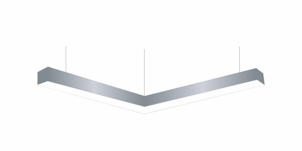 Светодиодный Угловой светильник LiNE-Pro 120гр. 500х500mm 40W 5000K серый предназначен для накладного или подвесного монтажа на тросовые подвесы. Изготовлен из сплошного сварного алюминиевого профиля в виде угла под 120 градусов. Высота установки светильника регулируется подвесом с цанговым тросовым зажимом и может варьироваться от 0,05 метра до 4 метров от основного потолка. Светильник имеет равномерную засветку по всей площади рассеивателя. Источник питания находится внутри корпуса. Торцевые заглушки входят в комплект. Возможно изготовление светильника с магистральной проводкой для соединения нескольких светильников в сплошную конструкцию.