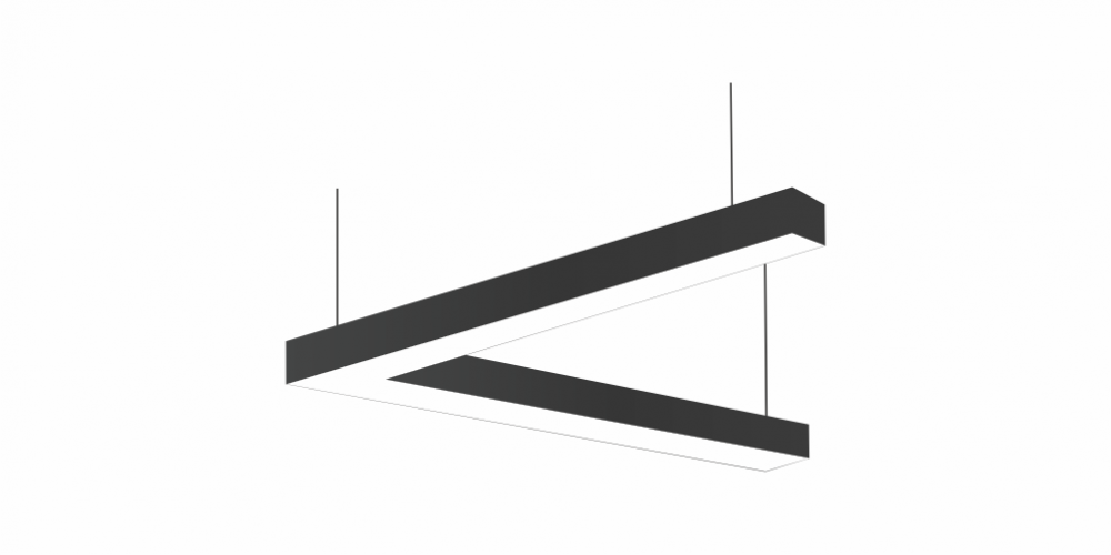Светодиодный Угловой светильник LiNE-Pro 45гр. 1000х1000mm 80W 6000K черный предназначен для накладного или подвесного монтажа на тросовые подвесы. Изготовлен из сплошного сварного алюминиевого профиля в виде угла под 45 градусов. Высота установки светильника регулируется подвесом с цанговым тросовым зажимом и может варьироваться от 0,05 метра до 4 метров от основного потолка. Светильник имеет равномерную засветку по всей площади рассеивателя. Источник питания находится внутри корпуса. Торцевые заглушки входят в комплект. Возможно изготовление светильника с магистральной проводкой для соединения нескольких светильников в сплошную конструкцию.