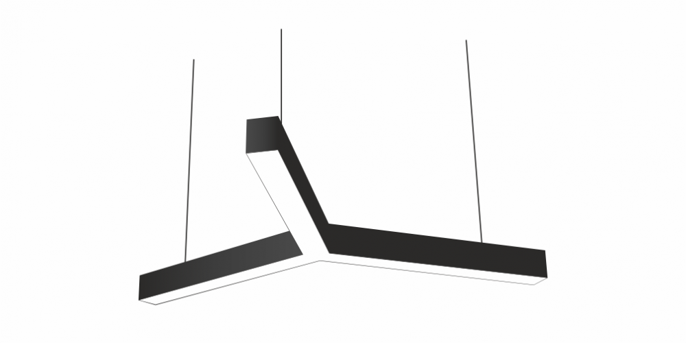 Светодиодный Лучевой светильник LiNE-Pro 3х750mm 40W 4000K черный предназначен для накладного или подвесного монтажа на тросовые подвесы. Изготовлен из сплошного сварного алюминиевого профиля в виде буквы «Y». Высота установки светильника регулируется подвесом с цанговым тросовым зажимом и может варьироваться от 0,05 метра до 4 метров от основного потолка. Светильник имеет равномерную засветку по всей площади рассеивателя. Источник питания находится внутри корпуса. Торцевые заглушки входят в комплект. Возможно изготовление светильника с магистральной проводкой для соединения нескольких светильников в сплошную конструкцию.