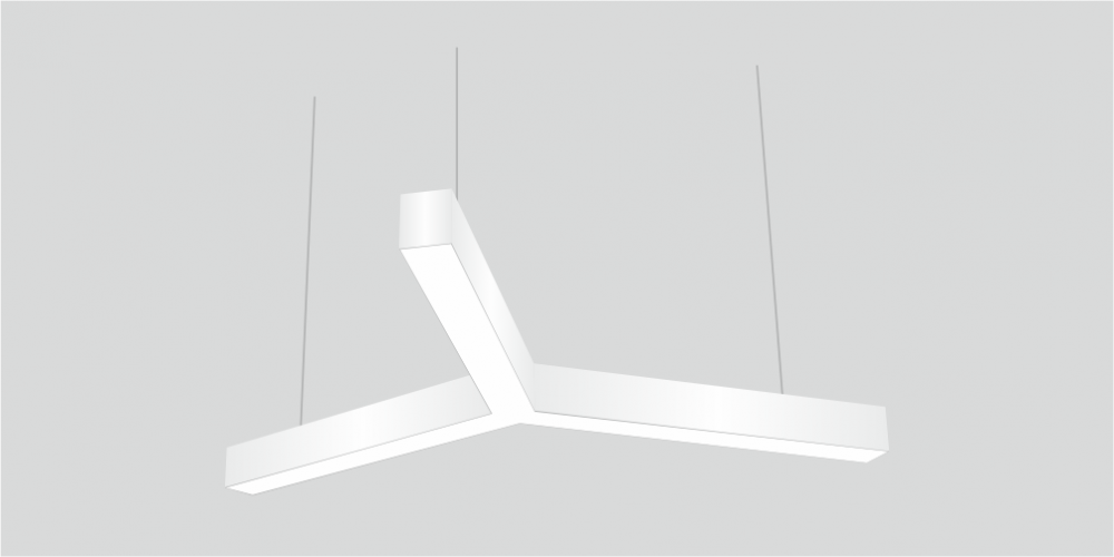 Светодиодный Лучевой светильник LiNE-Pro 3х750mm 80W 3000K белый предназначен для накладного или подвесного монтажа на тросовые подвесы. Изготовлен из сплошного сварного алюминиевого профиля в виде буквы «Y». Высота установки светильника регулируется подвесом с цанговым тросовым зажимом и может варьироваться от 0,05 метра до 4 метров от основного потолка. Светильник имеет равномерную засветку по всей площади рассеивателя. Источник питания находится внутри корпуса. Торцевые заглушки входят в комплект. Возможно изготовление светильника с магистральной проводкой для соединения нескольких светильников в сплошную конструкцию.