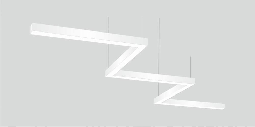 Фигурный светодиодный Светильник Зигзаг LiNE-Pro 5х500mm 45W 6000K белый предназначен для накладного или подвесного монтажа на тросовые подвесы. Изготовлен из сплошного сварного алюминиевого профиля в виде зигзага. Высота установки светильника регулируется подвесом с цанговым тросовым зажимом и может варьироваться от 0,05 метра до 4 метров от основного потолка. Светильник Зигзаг имеет равномерную засветку по всей площади рассеивателя. Источник питания находится внутри корпуса. Торцевые заглушки входят в комплект. Возможно изготовление светильника с магистральной проводкой для соединения нескольких светильников в сплошную конструкцию