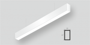 Линейный светодиодный Подвесной светильник LiNE-Pro 67x35 1500mm 21W 6000K Белый предназначен для подвесного монтажа на тросовые подвесы. Изготовлен из алюминиевого профиля длиной 1500 мм, мощностью 21 Вт c цветовой температурой 6000 K, цвет корпуса Белый. Высота установки светильника регулируется подвесом с цанговым тросовым зажимом и может варьироваться от 0,05 метра до 4 метров от основного потолка. Линейный светильник может использоваться для реечных потолков. Светильник имеет равномерную засветку по всей площади рассеивателя. Источник питания находится внутри корпуса. Торцевые заглушки входят в комплект.