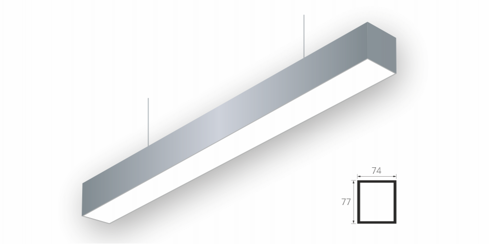Линейный светодиодный Подвесной светильник LiNE-Pro 77x74 1000mm 30W 5000K Серый предназначен для подвесного монтажа на тросовые подвесы. Изготовлен из алюминиевого профиля длиной 1000 мм, мощностью 30 Вт c цветовой температурой 5000 K, цвет корпуса Серый. Высота установки светильника регулируется подвесом с цанговым тросовым зажимом и может варьироваться от 0,05 метра до 4 метров от основного потолка. Линейный светильник может использоваться для реечных потолков. Светильник имеет равномерную засветку по всей площади рассеивателя. Источник питания находится внутри корпуса. Торцевые заглушки входят в комплект.