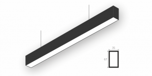 Линейный модульный светодиодный Подвесной светильник LiNE-Pro 67x35 1000mm 60W 4000K Черный предназначен для подвесного монтажа на тросовые подвесы. Изготовлен из алюминиевого профиля длиной 1000 мм, мощностью 60 Вт c цветовой температурой 4000 K, цвет корпуса Черный. Светильники соединяются в сплошную линию с помощью комплекта линейного соединения и сплошной магистральной проводки. Светильник имеет равномерную засветку по всей площади рассеивателя. Источник питания находится внутри корпуса.