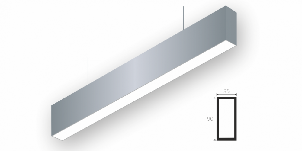 Линейный модульный светодиодный Подвесной светильник LiNE-Pro 90x35 1250mm 75W 4000K Серый предназначен для подвесного монтажа на тросовые подвесы. Изготовлен из алюминиевого профиля длиной 1250 мм, мощностью 75 Вт c цветовой температурой 4000 K, цвет корпуса Серый. Светильники соединяются в сплошную линию с помощью комплекта линейного соединения и сплошной магистральной проводки. Светильник имеет равномерную засветку по всей площади рассеивателя. Источник питания находится внутри корпуса.